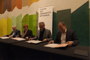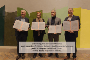 Jeudi 26 novembre 2025, à l’Hôtel de Sully à Paris, s’est tenue la signature de la convention de partenariat entre le Centre des monuments nationaux, la Chambre de Métiers et de l’Artisanat Auvergne-Rhône-Alpes et l’Institut de Formation Professionnelle de Haute-Loire, en collaboration avec l’Union Nationale de l’Artisanat des Métiers de l’Ameublement et CMA France.